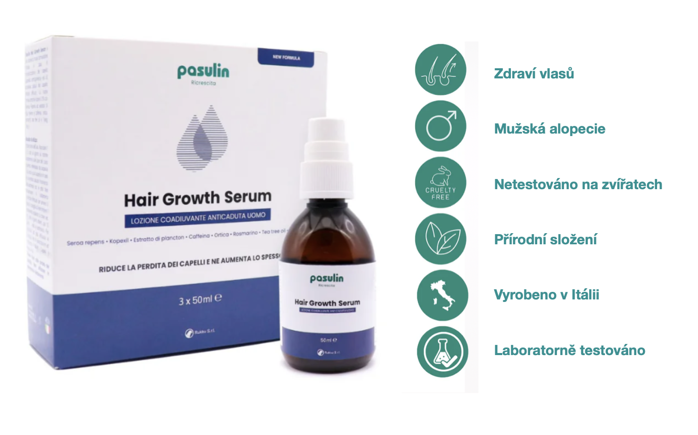 Pasulin Hair Growth Serum je přírodní sérum navržené pro každodenní péči o slabé a řídké vlasy. Obsahuje účinnou kombinaci kofeinu, biotinu, extraktu z kopřivy a dalších látek, které napomáhají zlepšit celkový stav pokožky hlavy a vytváří optimální podmínky pro růst silnějších a zdravějších vlasů.
